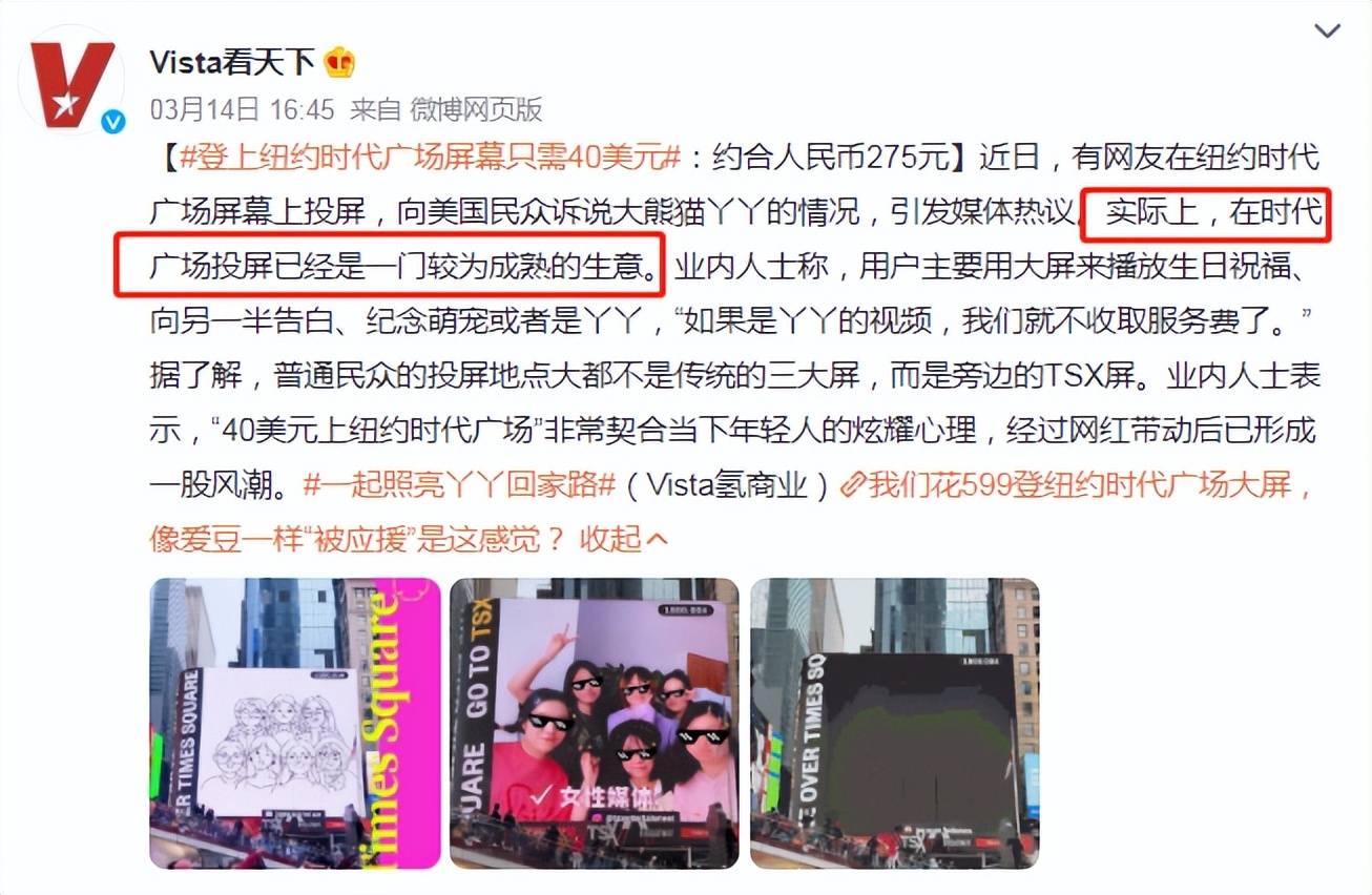 有人说:在时代广场投屏已经是一门较为成熟的生意。是不是这样,元元也不知道,太远,没去过!