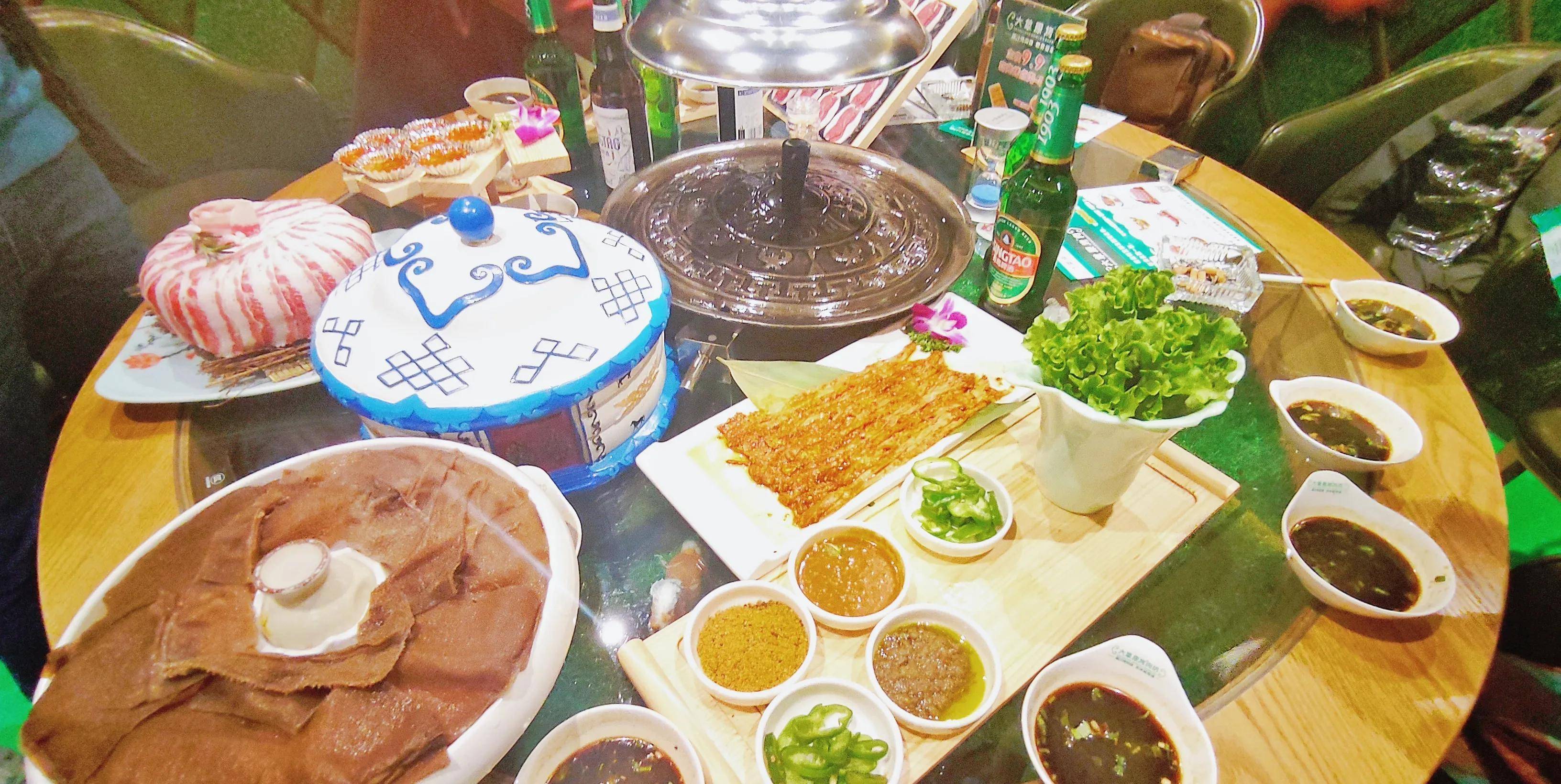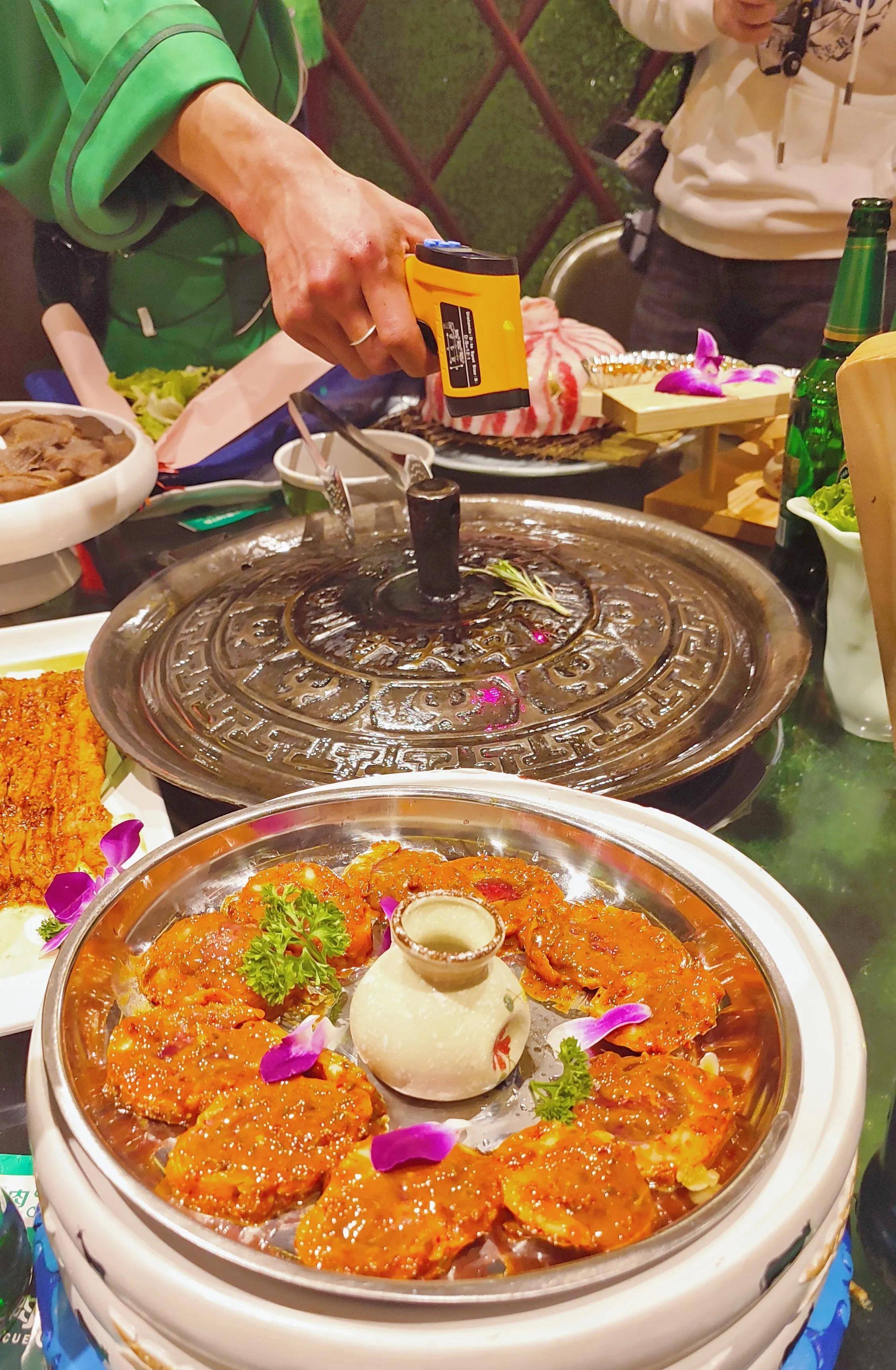 当然,如此烤制的美食除了这“法宝”之外,定然脱离不了食材的精挑细选。据风趣幽默的服务小哥介绍,他们家的食材都精选自草原原生食材,加上不常见的测温枪控制让烤肉的美味显得更精确,近乎于“标准化”......席间还有蒙古族歌手的献唱助兴,气氛甚是热闹。大家吃着这“标准化”的烤肉,自然离不开烤肉+啤酒的绝配,都是熟人当然按照少数服从多数的惯例原则举手表态具体喝什么?不出意外,9:1的结果选定日常标配:青岛不倒我不倒,只为众好友在一起发自内心地尽兴到底。