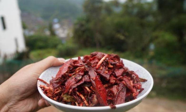 尽管血红肉是用鲜猪血做的美食,但是丝毫没有血的腥味,可能是用折耳根,葱,姜等食材把腥味去掉了。这种美食在外地人看来绝对是重口味,但是当地人都特别喜欢吃,而且逢年过节餐桌上的必备佳品,还会用来招待远道而来的贵宾,但是多数外地人不敢吃。这样的重口美食,你敢吃吗?