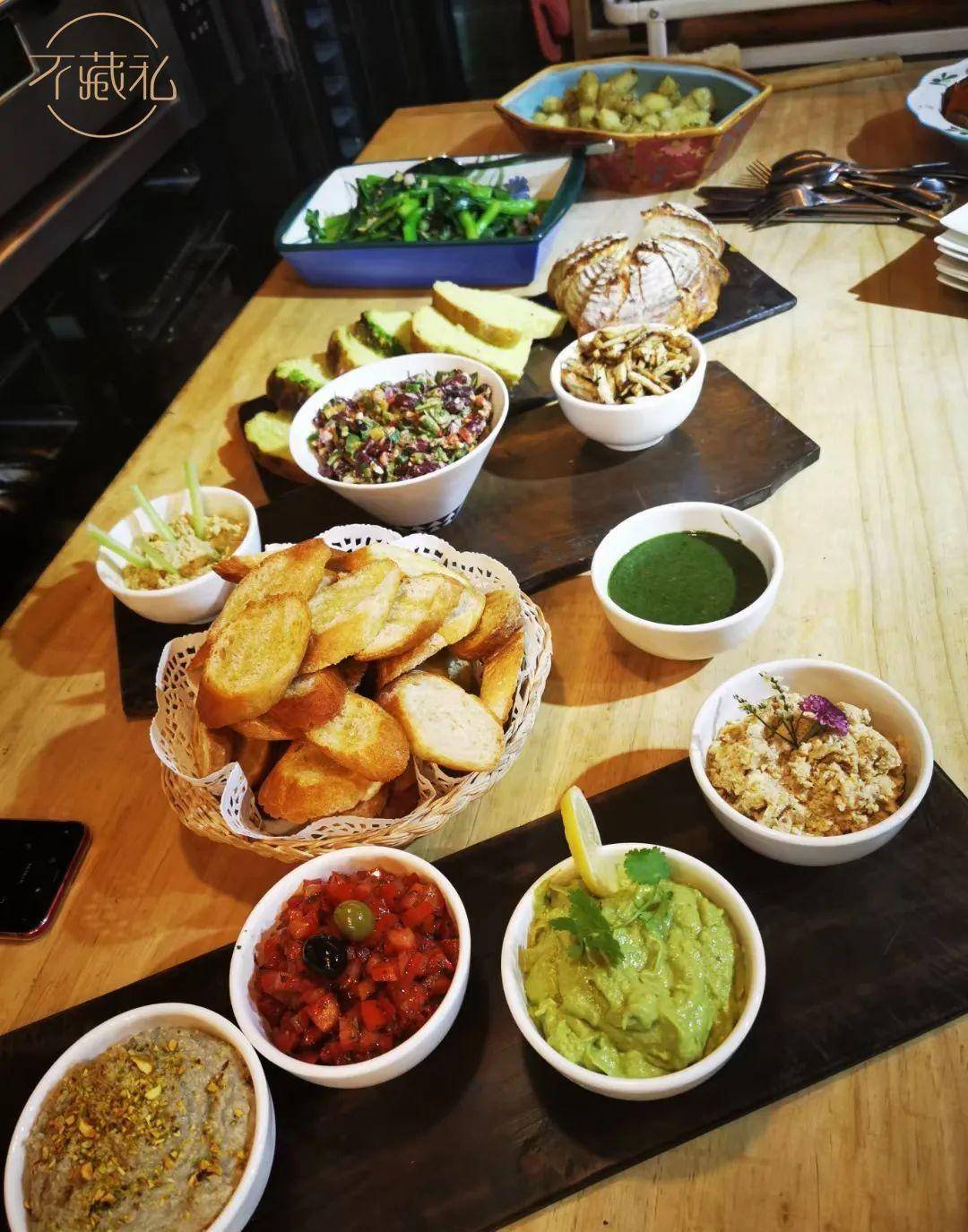 小小面包店到了晚上,还转身变成面包&素食晚餐小馆,大家一起动手,分享素食新吃法。