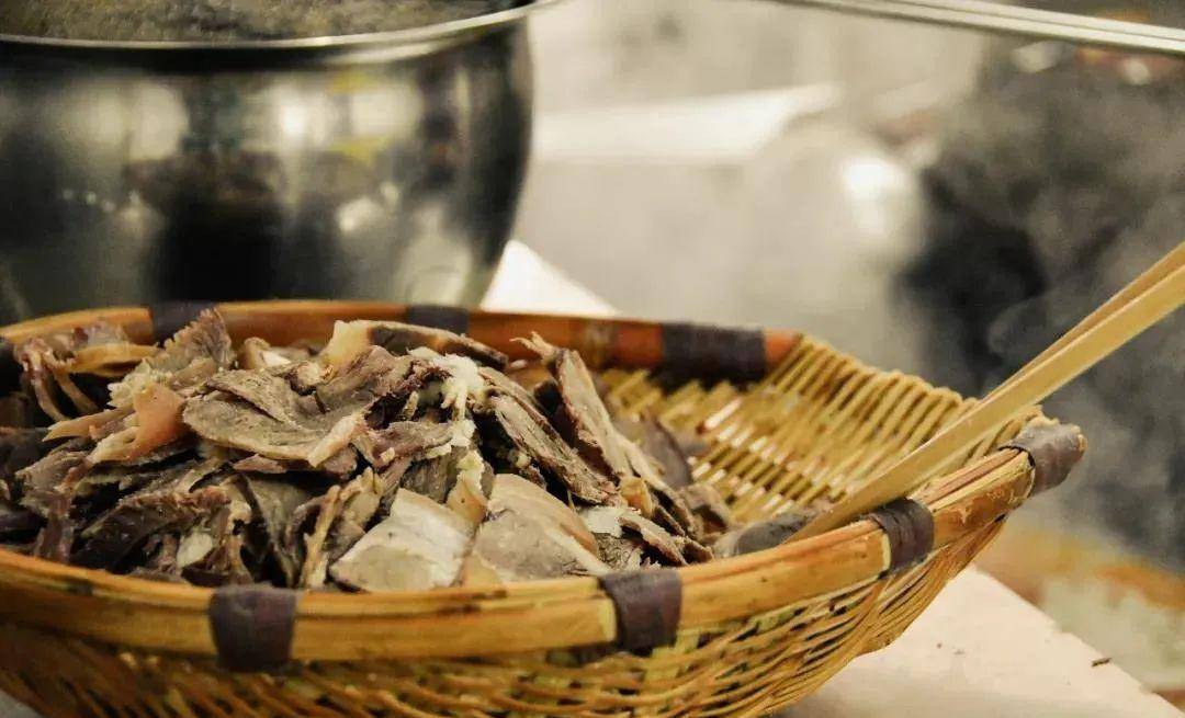 带皮山羊加十几味香料炖煮后切成薄片,