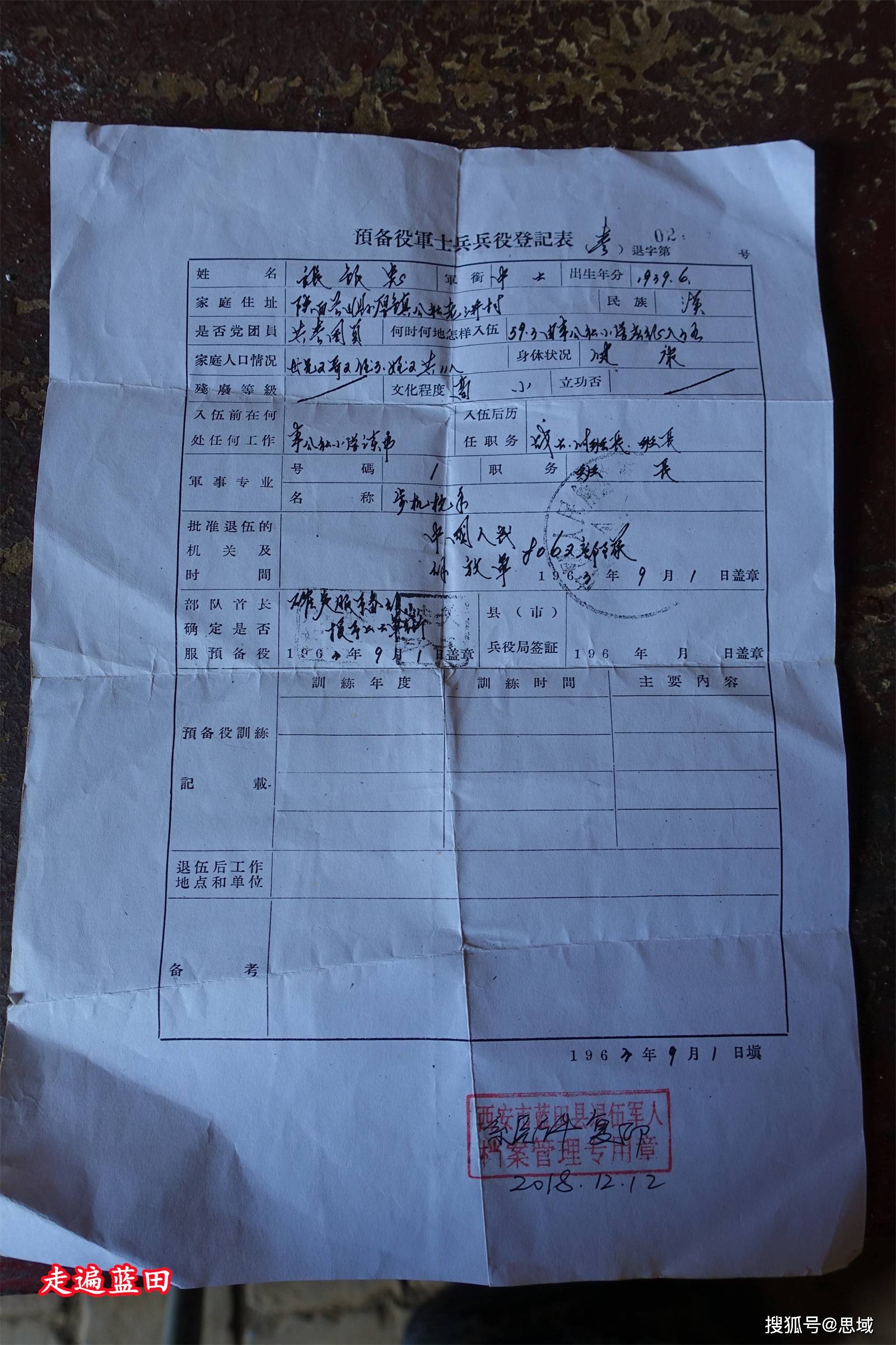 (2)张叔叔告诉我说:当兵服役在青海大通县,入伍时,正是国家三年经济困难时期,在这个情况下,部队也是节衣缩食.....但当时,战士们依然坚持刻苦训练和学习,此后,我们部队又参加了草原平叛和对印自卫反击作战,五年军旅生活,让我得到充分的学习和锻炼,受益匪浅......1963年,我退伍回乡,在村里参加劳动,期间,当过民兵连长,后来又去了蓝田县玉石厂工作直至退休。