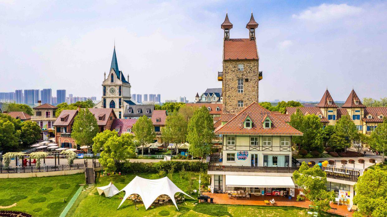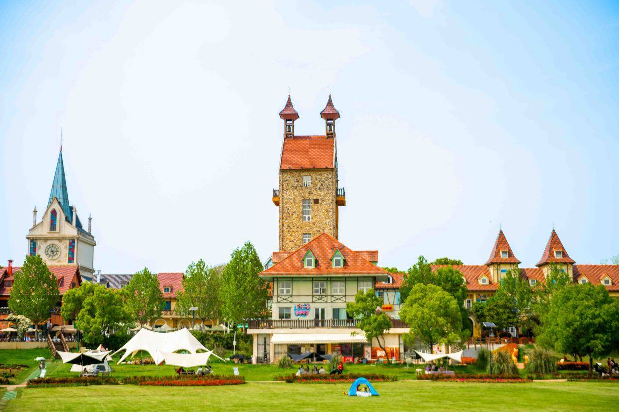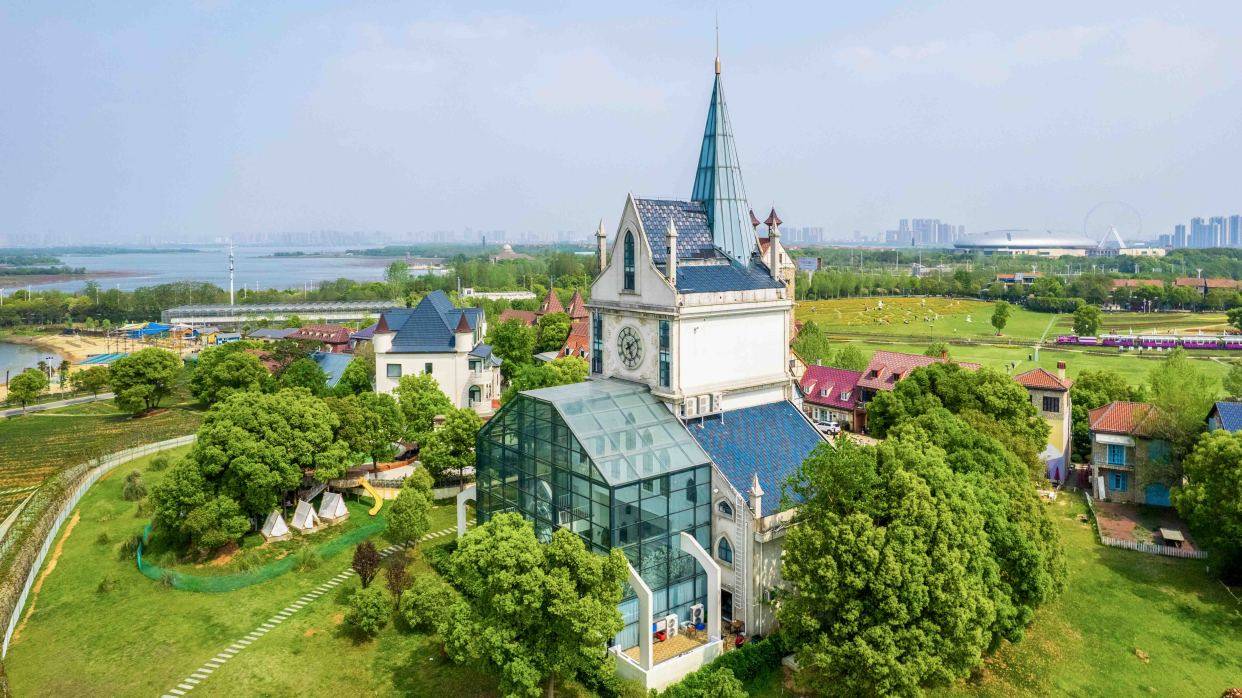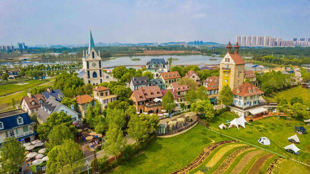 花博汇是一个集花卉旅游观光、田园养生度假、亲水休闲娱乐、美丽乡村体验等功能于一体的大型中法武汉生态示范城。景区中心修建了一处水池,周围设置了喷泉可以随音乐变换,四周是铺满花卉的缓坡,在山坡远处,更是修建了法式教堂、钟塔、风车、城堡等,欧式气息十分浓郁,完全不输国外的氛围。