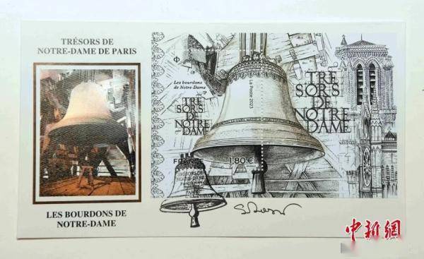 法国15日发行巴黎圣母院珍宝主题邮票,旨在纪念巴黎圣母院大火四周年。邮票图案是圣母院著名的大钟。该邮票面值1.8欧元,以小型张形式印制,总印量55万张。