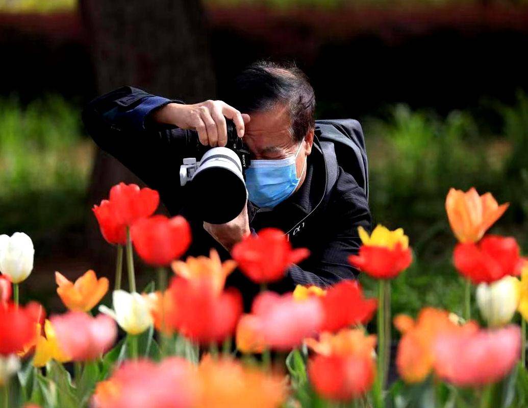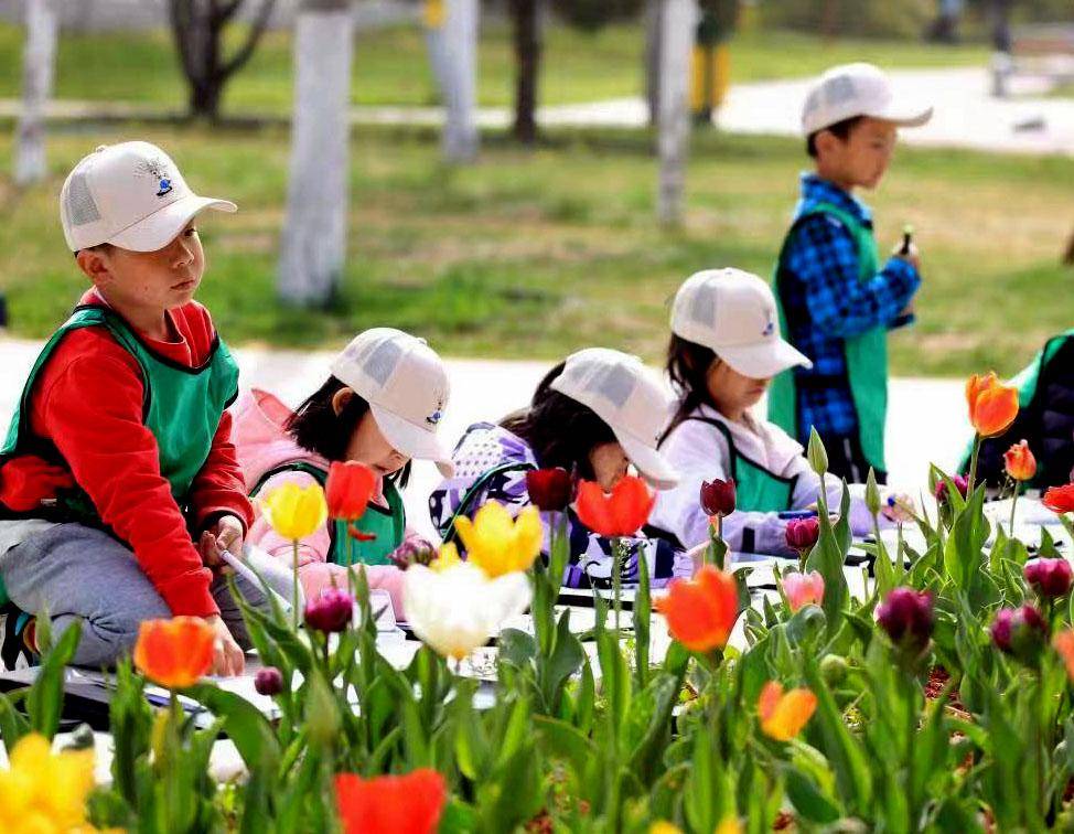 阳春四月,春日融融,和风阵阵,阳光灿烂,万物博生。北京国际雕塑公园内五颜六色的郁金香花随风摇曳,这里俨然成为了花的海洋,郁金香铺陈出一场大自然的视觉盛宴。孩子们将郁金香画下来作为春天的记忆吴镝 摄