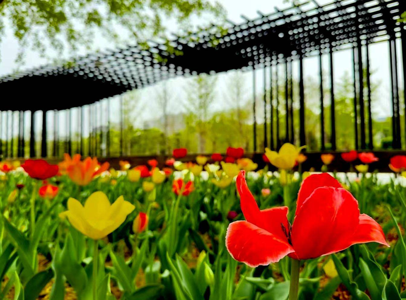 原标题:雕塑公园郁金香盛开,赏花漫步感受春天的气息