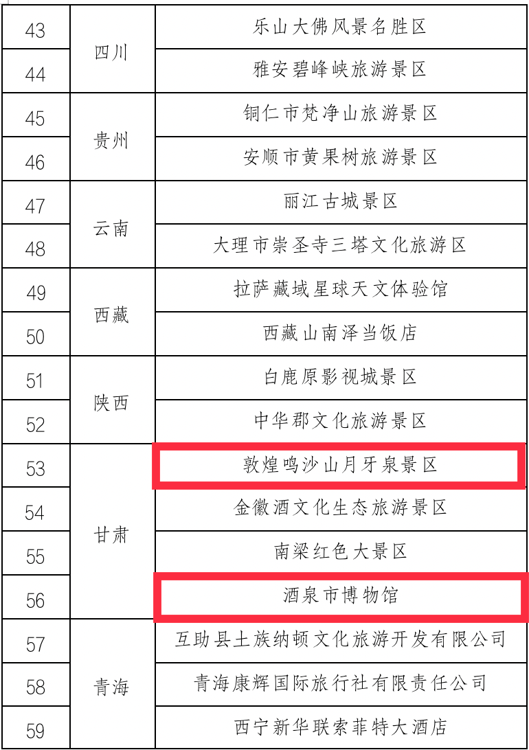 敦煌鸣沙山月牙泉景区、酒泉市博物馆上榜
