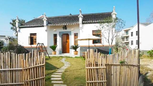 一直走到村尾,慢慢发现了胡兴咀的与众不同。首先是村里不仅有正常生活的居民,也有不少民宿,它们的建筑样式一眼瞅出,通常是前门后院的标间,但这种前门后院有别于居民生活的前门后院,它们的院墙是用木头和竹子简单搭建,仅仅是象征意义。院子里也会配套搭建休闲的座椅,大的太阳伞是标配,青草植被和石板点缀,房屋的样式更加复古。最重要的是,民宿的环境建造的很干净,属于拎包入住的状态。