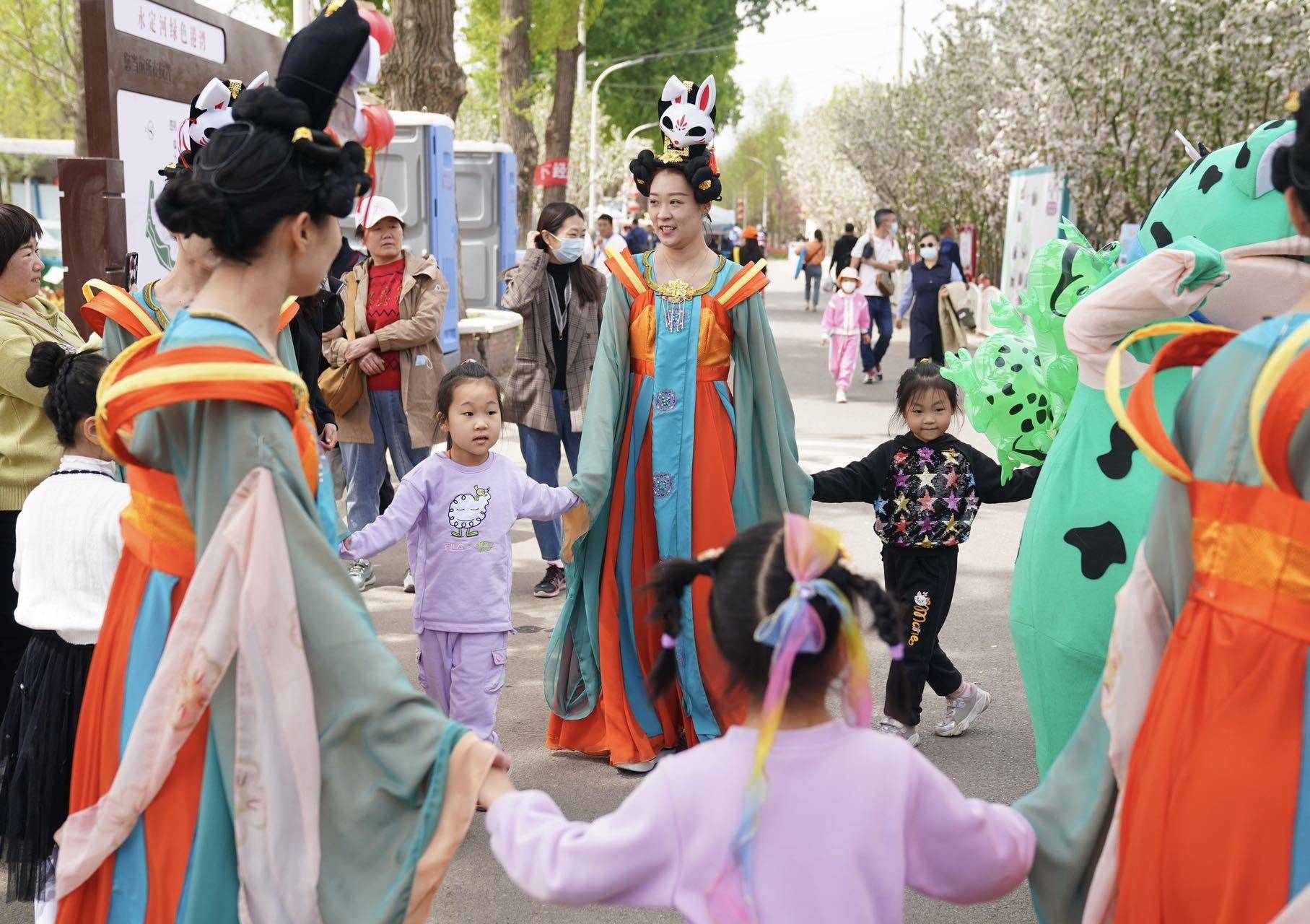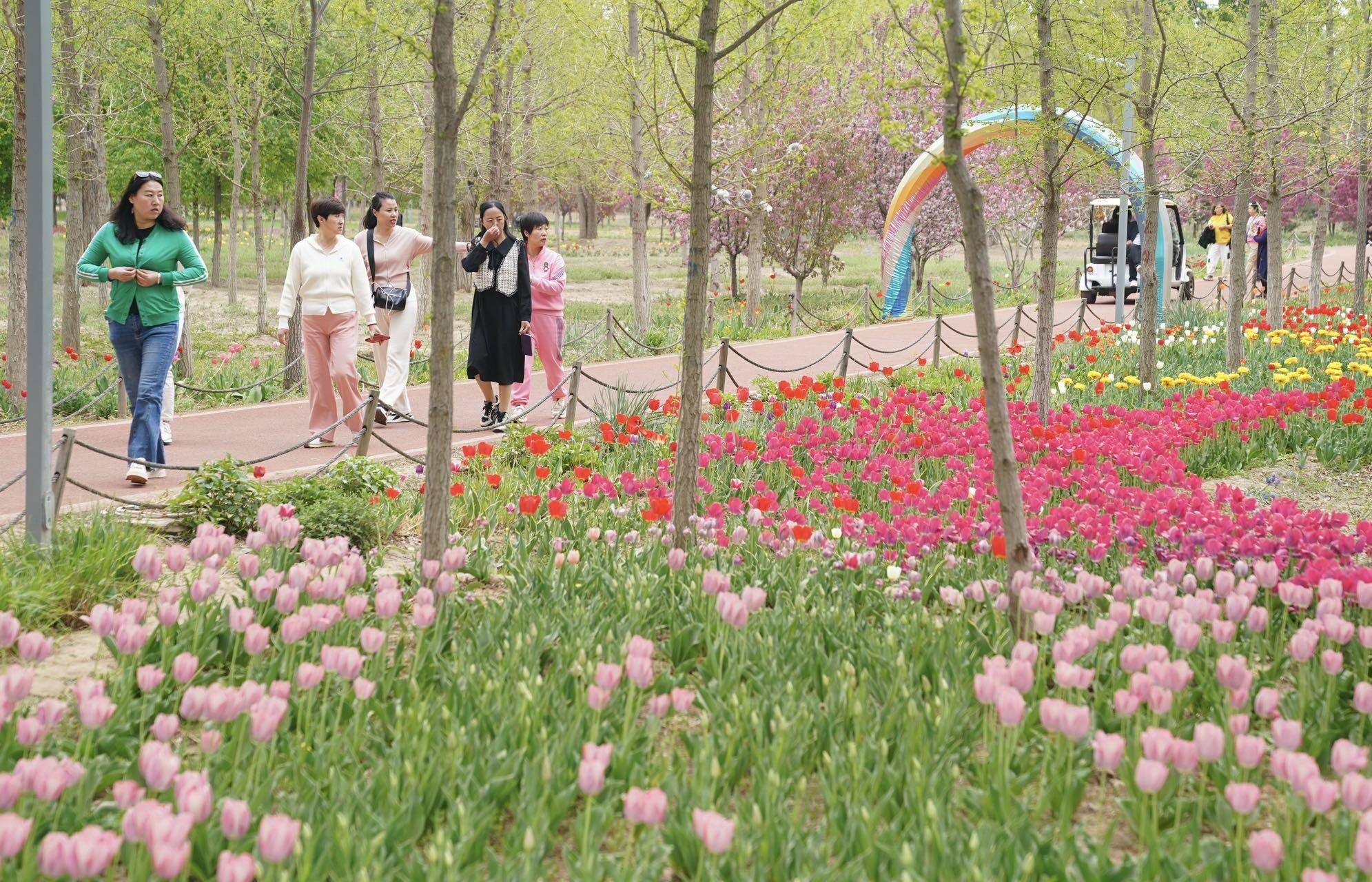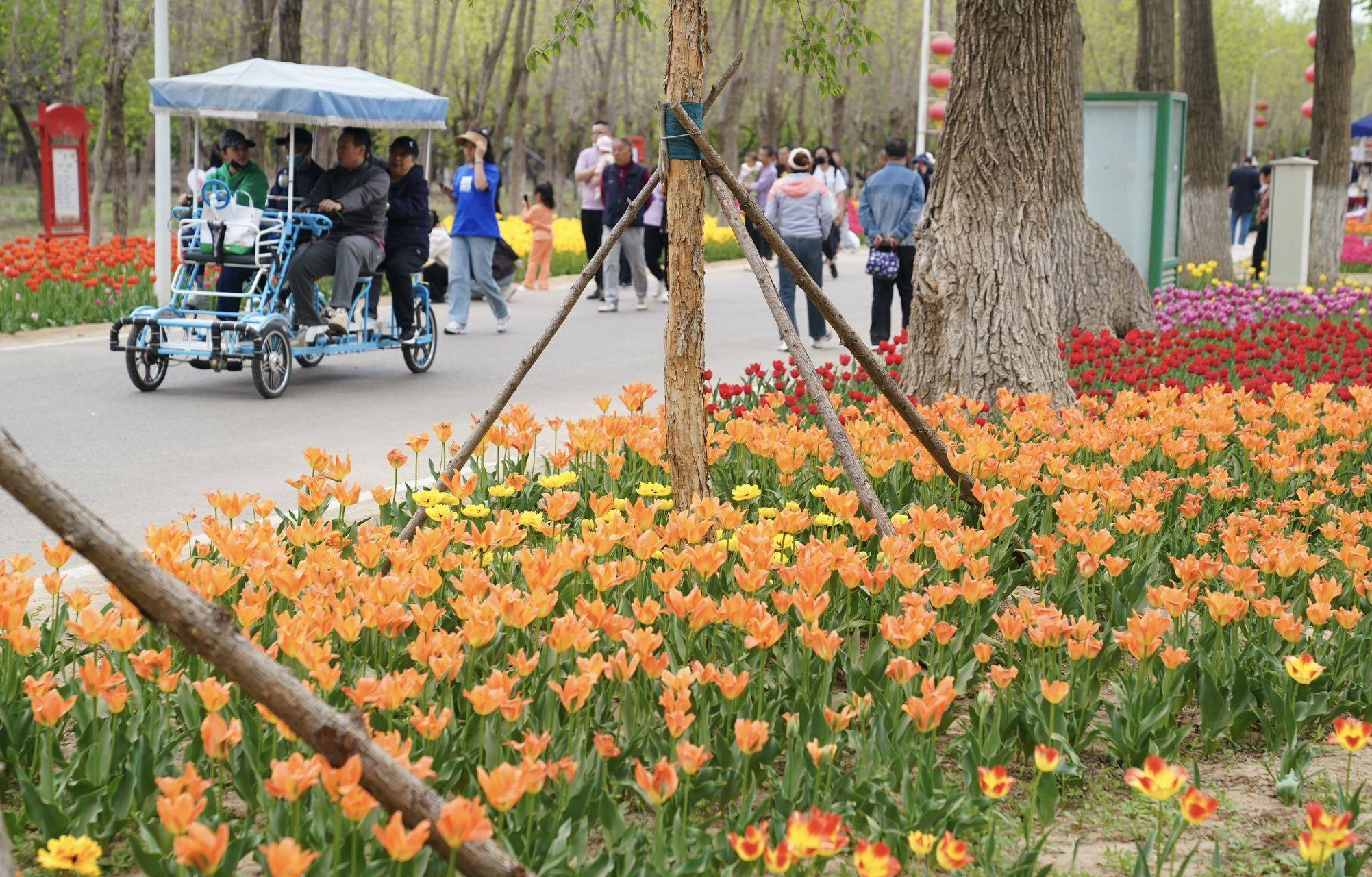 4月16日,大兴区北臧村镇举行的北京市2023年永定河绿色港湾郁金香文化节吸引了大批市民赏花踏青。