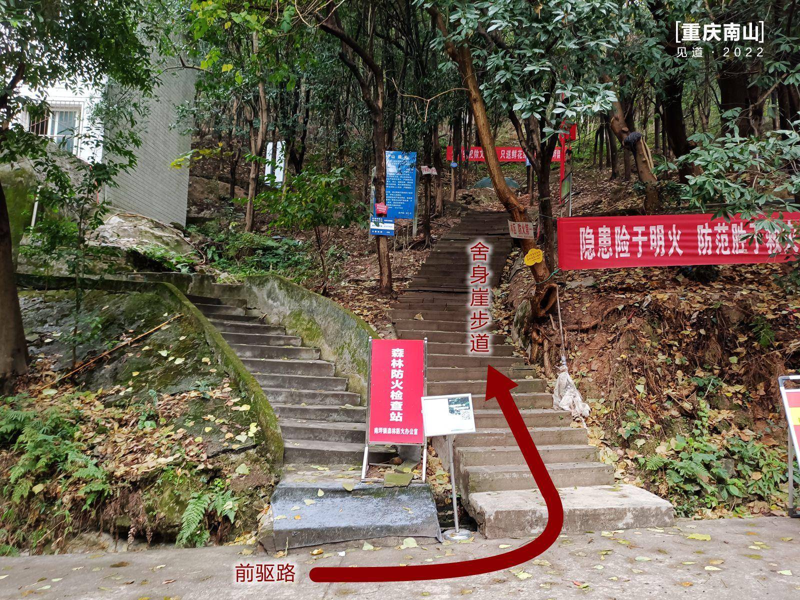 重庆南山舍身崖步道,是上新街爬南山的几条步道之一。与黄葛古道毗邻,下接前驱路,上接文峰山步道。