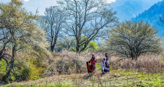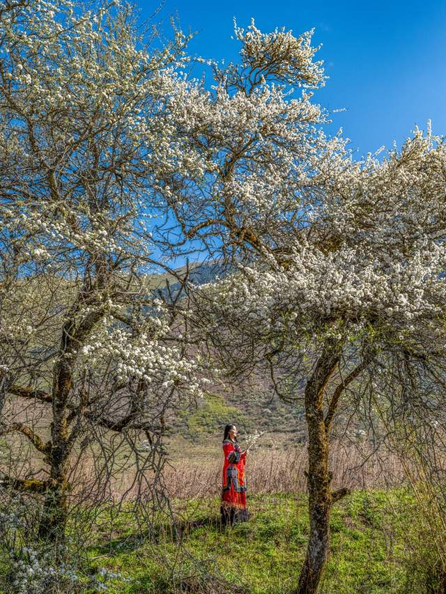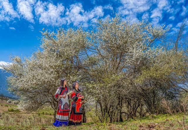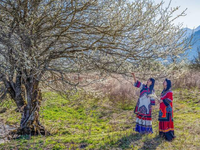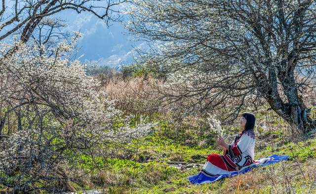 四川省石棉县地处大渡河中游、横断山脉中东段,海拔跨度很大,从七百多米到六千多米之间,气候垂直差异很大。当大渡河畔的县城已经快要进入夏天的时候,海拔2600多米的孟获城草甸才刚刚进入初春时节,而最先感知到春天气息的就数这野李子花了。
