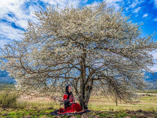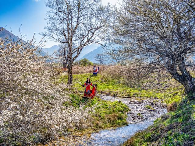 4月16日,春日暖阳早早地洒满石棉县孟获城草甸,漫山遍野的野李子花争相开放,向沉睡了一个冬天的高山草甸报告着春的消息。