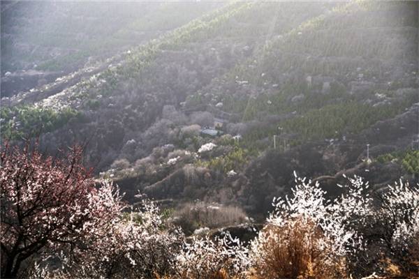 整个春天,寨子湾一直沐浴在绿荫和鲜花的海洋里,各种各样的树,五彩缤纷的花,好多都叫不上名字,因为子午岭本来就是一个大的植物园。奇花异草,凝彩滴翠,花草种类繁多,兽走禽飞,风光旖旎。但每年春季最先盛开的一定是山桃花,满树的花竞相吐蕊、争芳斗艳,远远就能闻到馥郁的芳香。放眼望去,漫山遍野,山花烂漫,花团锦绣,红如火,粉如霞,真是美不胜收。小小的山桃花,微红的花瓣一个个连在一起,既像南梁革命根据地的万千群众,也像刘志丹将军的千军万马,看似微小,连片成海,满沟满山,也有震撼人的力量。