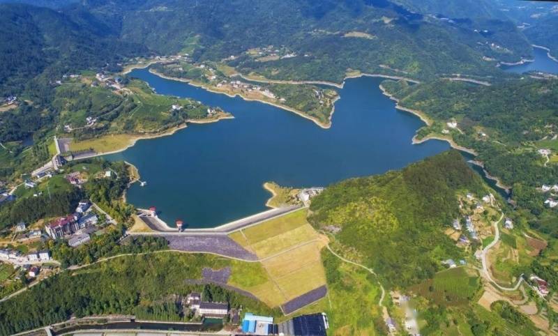 竹山县城关镇刘家山村木鱼湖周围茶山环绕