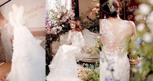 婚礼沙龙现场,新人们还可以一网打尽多个品牌的婚嫁及礼品系列。总部位于西班牙巴塞罗那的宝诺雅PRONOVIAS,是全球婚纱设计领域的先驱者,活动现场展出了MARCHESA系列婚纱,最新款的“花朵”装饰仙气满满,吸引了不少“准新娘”现场试穿和拍照,实在是太美了!