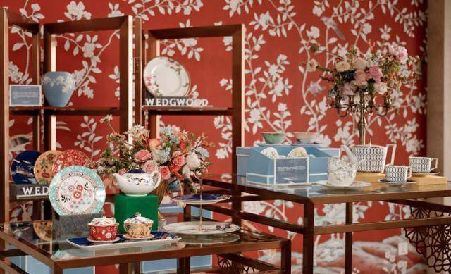 花园两侧陈列的WEDGWOOD经典骨瓷餐具,触感细腻,色彩柔和,美得让周到君挪不开眼。创立于1759年的TA是国外皇室御用瓷器品牌,几百年来为世界各地的王室及众多注重生活品质的准新娘和家庭提供了各种精致餐瓷具。此次婚礼沙龙上,WEDGWOOD展出了多款臻选新婚礼品,包含花间舞蝶系列骨瓷对杯、金粉年华系列双人茶具套装、漫游美境系列中式敬茶杯等,都寓意著对新人们开启美好生活的满满祝福。