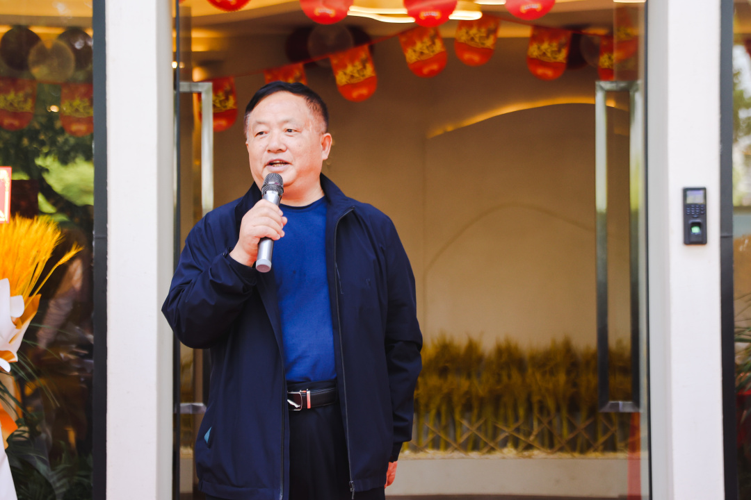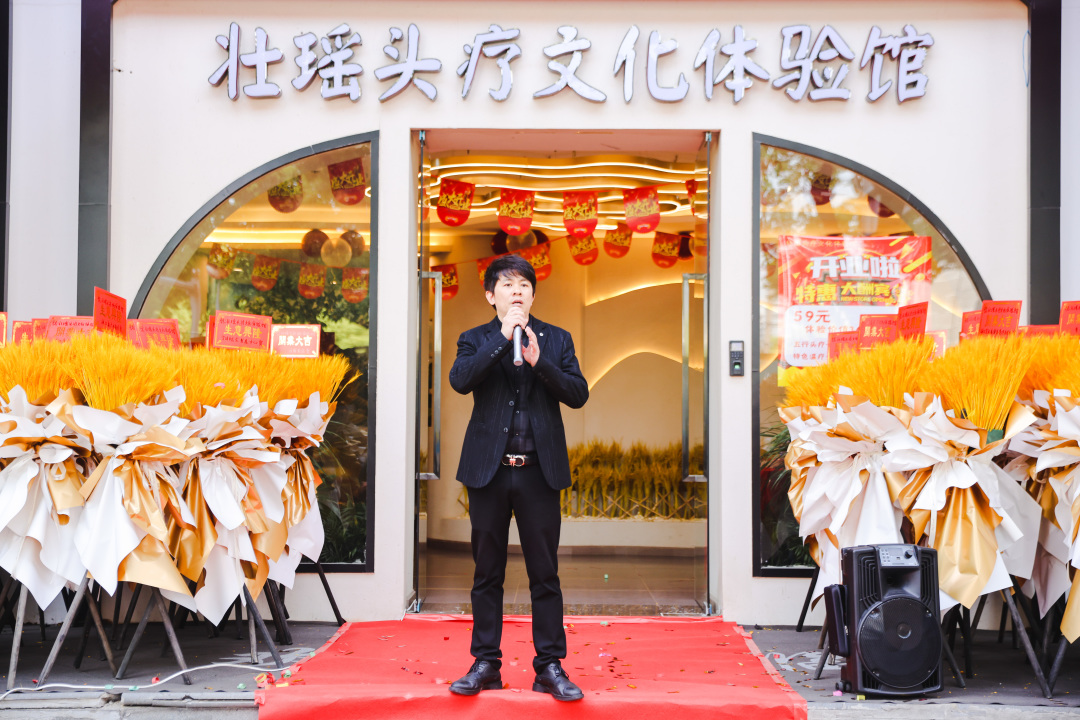 浙江省广西商会执行会长覃建业先生发表致辞,并对壮瑶特色头疗文化体验馆开业表示祝福。