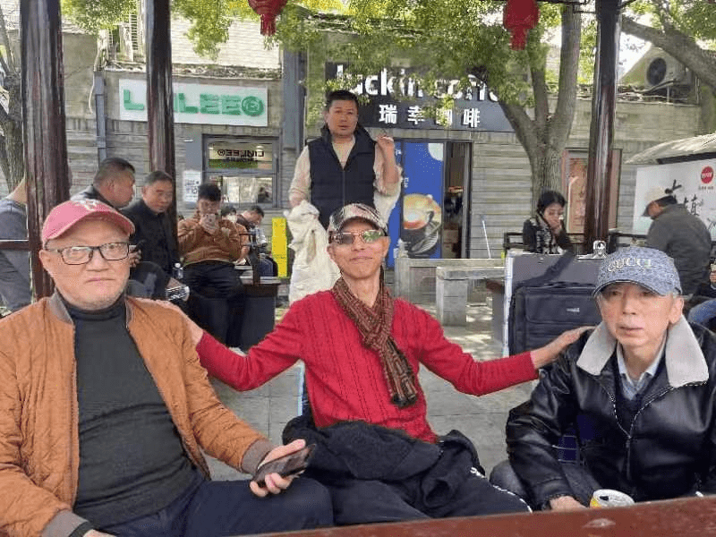 上图为:著名油画家冯振华与其他艺术家在朱家角古镇