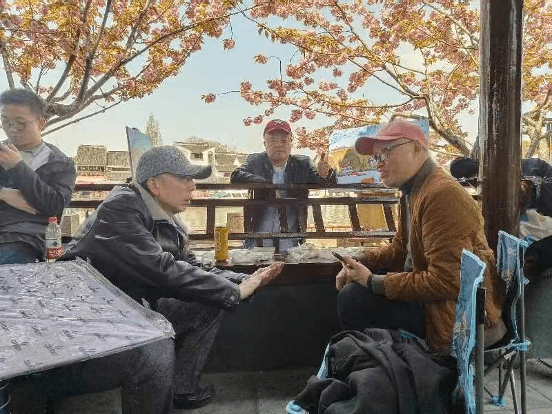 春光明媚、风和日丽,上海市朱家角古镇,历经了三年疫情,又恢复了往日的生机。2023年4月9日上午,朱家角古镇游客络绎不绝,人群熙熙攘攘。中美著名艺术家汇聚上海朱家角古镇实地写生,给朱家角古镇添上了浓浓的艺术气息。引来了游客们的注意,成为一道亮丽的风景线。