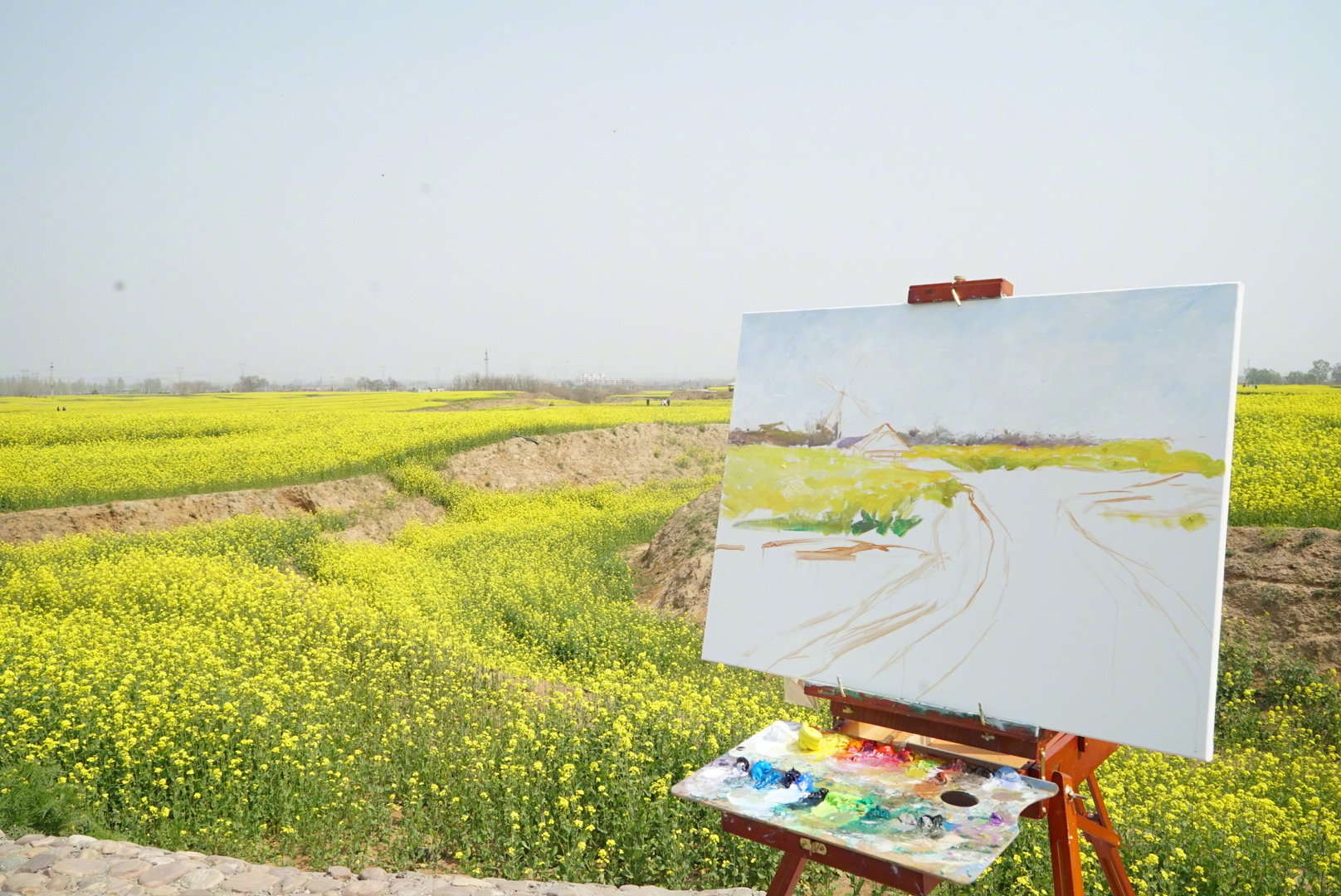 花海中还有精彩节目轮番上演,在花田边分布着书画、歌舞等现场表演,游客可在油菜花的簇拥中,沉浸式地欣赏春日诗画歌舞艺术;