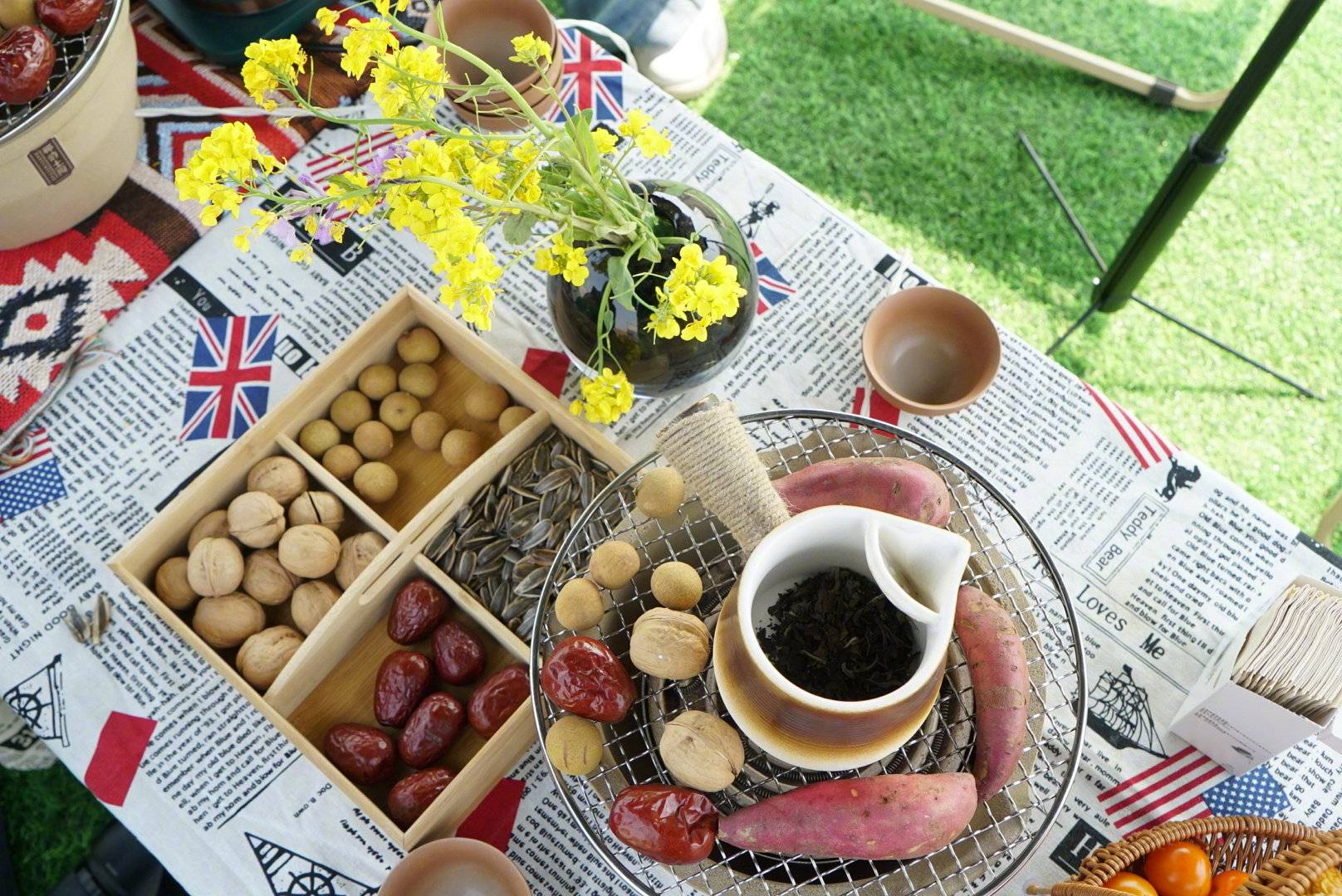 花田边搭建的营地区提供多种露营选择,户外休闲帐篷、房车小院、充气帐篷种类多样,让久居城市的人们在清新的空气中围炉煮茶,尽情拥抱大自然;