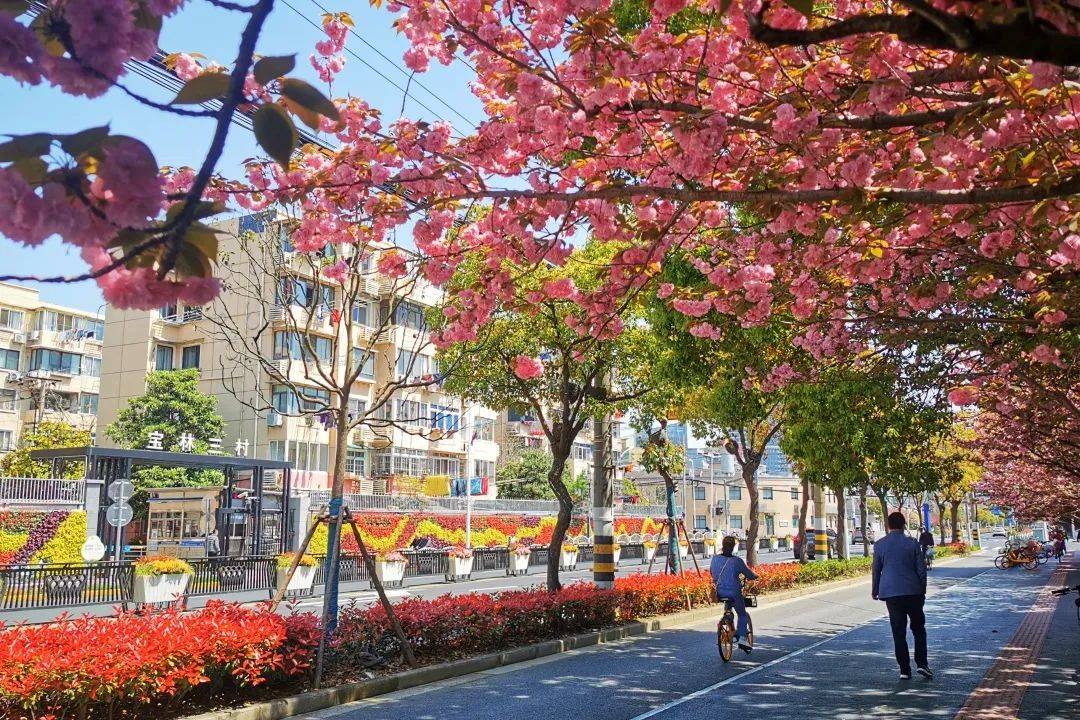 宝杨路是进入宝山邮轮港的主要道路,全路段共种植樱花184株。