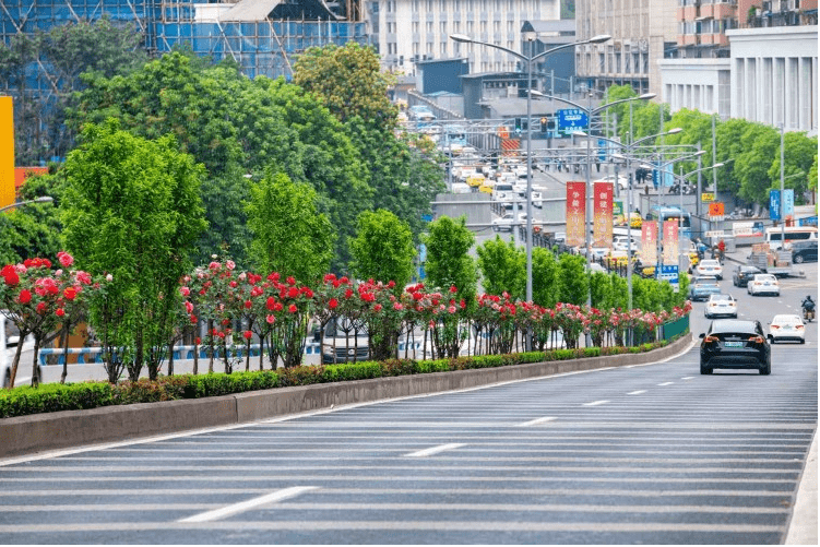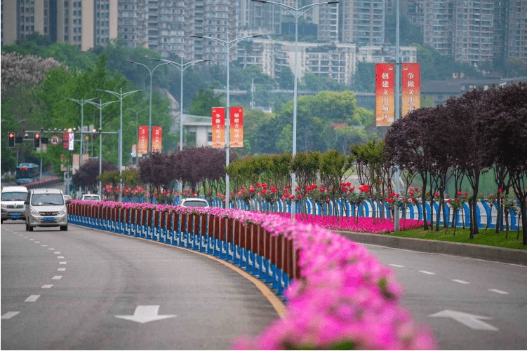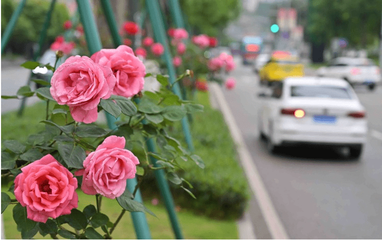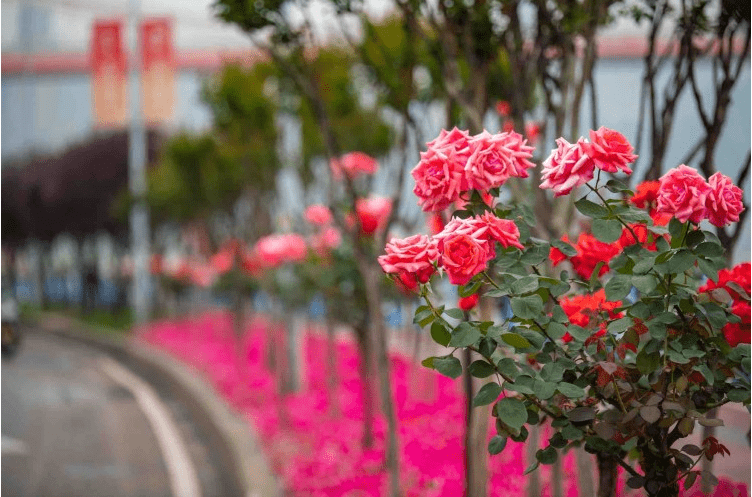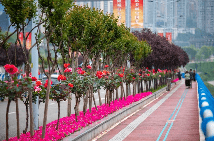 其中,树状月季主要分布在九滨路、南北大道、龙腾大道、奥体路、渝州路;藤本月季主要分布在锦龙路、龙泉路、谢家湾立交、陈家坪立交。