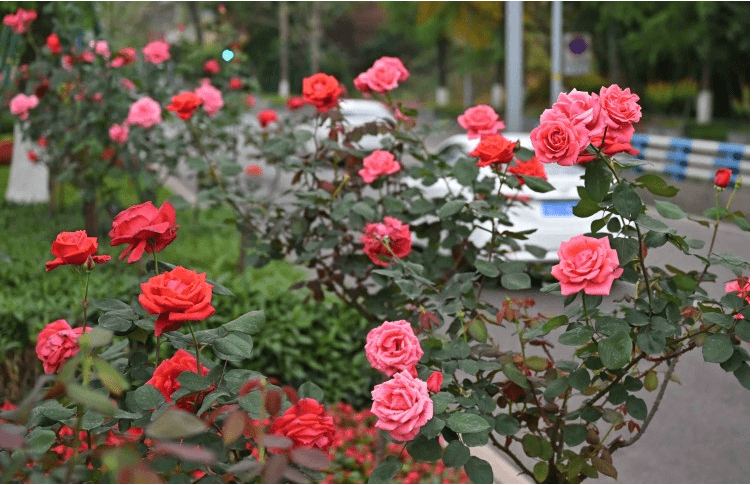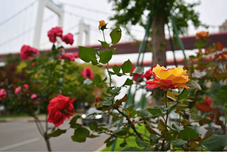 九龙坡区城市管理局相关负责人介绍,九龙坡区藤本月季品种主要以安吉拉、大红袍为主,花期为4-5月。九龙坡区城市管理局通过修剪、编扎、施肥等管护手段,促使它们每年都花繁叶茂。
