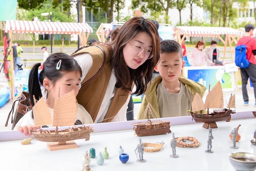 在发布会场外的普熙金融广场,不少市民在非遗文创市集上流连忘返。在普陀文创的展台上,各式各样的文创产品精致有创意。其中,以普陀桥梁和建筑为原型的纪念徽章吸引了不少眼球。“纪念徽章比较有纪念价值的,它是普陀区里比较有名的各个建筑和桥梁,比如像宝成桥,上海造币厂等等。”现场工作人员介绍。