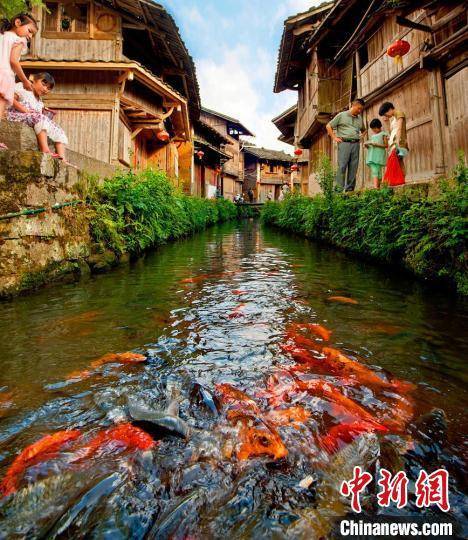 周宁县浦源村鲤鱼溪景区,一条清溪自西向东从村中穿流而过,溪中自在游弋着各色鲤鱼。 宁德市委宣传部 供图