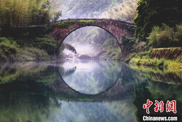 柘荣县溪口村永安桥,华东最大单孔石拱桥,两岸山峰耸峙,竹木葱荣,风景如画。 宁德市委宣传部 供图