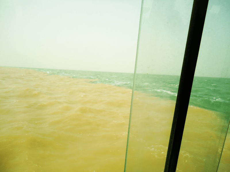 到此旅游,除去观景看鸟外,最为惬意的是看黄河水与渤海水“两水交汇处”。河水与海水融在一起,黄色与蓝色十分分明清晰,实属神奇景观。
