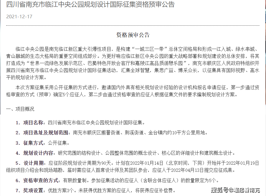 该项目位于临江新区的搬罾大学城片区,已经开始向全球征集规划设计方案,具体范围为川北医学院新校区拟用地南侧,