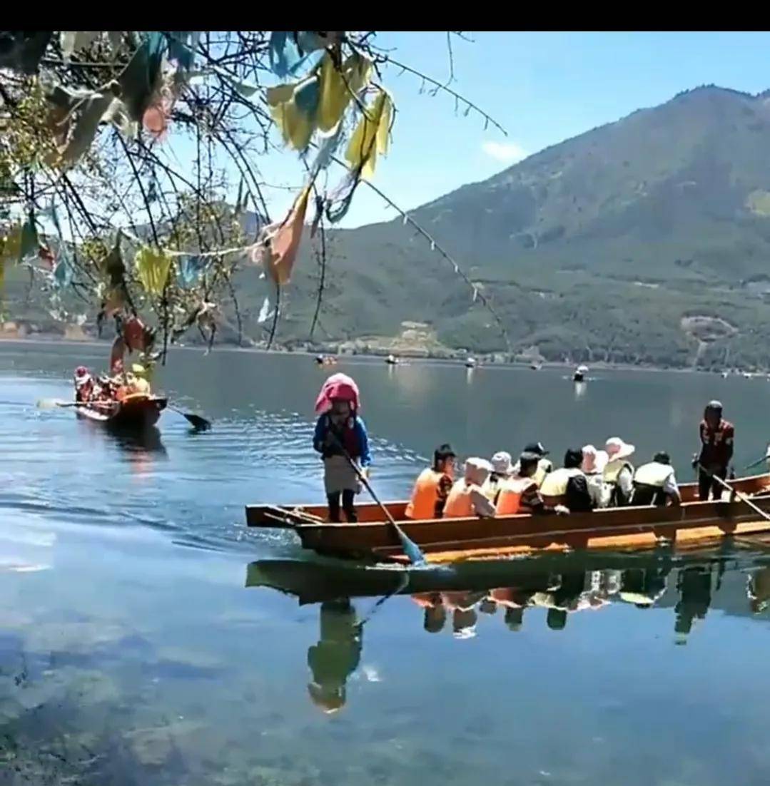 第二天被安排去泸沽湖看它的美景,我们按导游的指导全副武装地擦好防晒霜穿好防晒衣,沪沽湖太阳很毒辣,但她的湖水清澈见底,照得出人影,美得让人留连忘返。