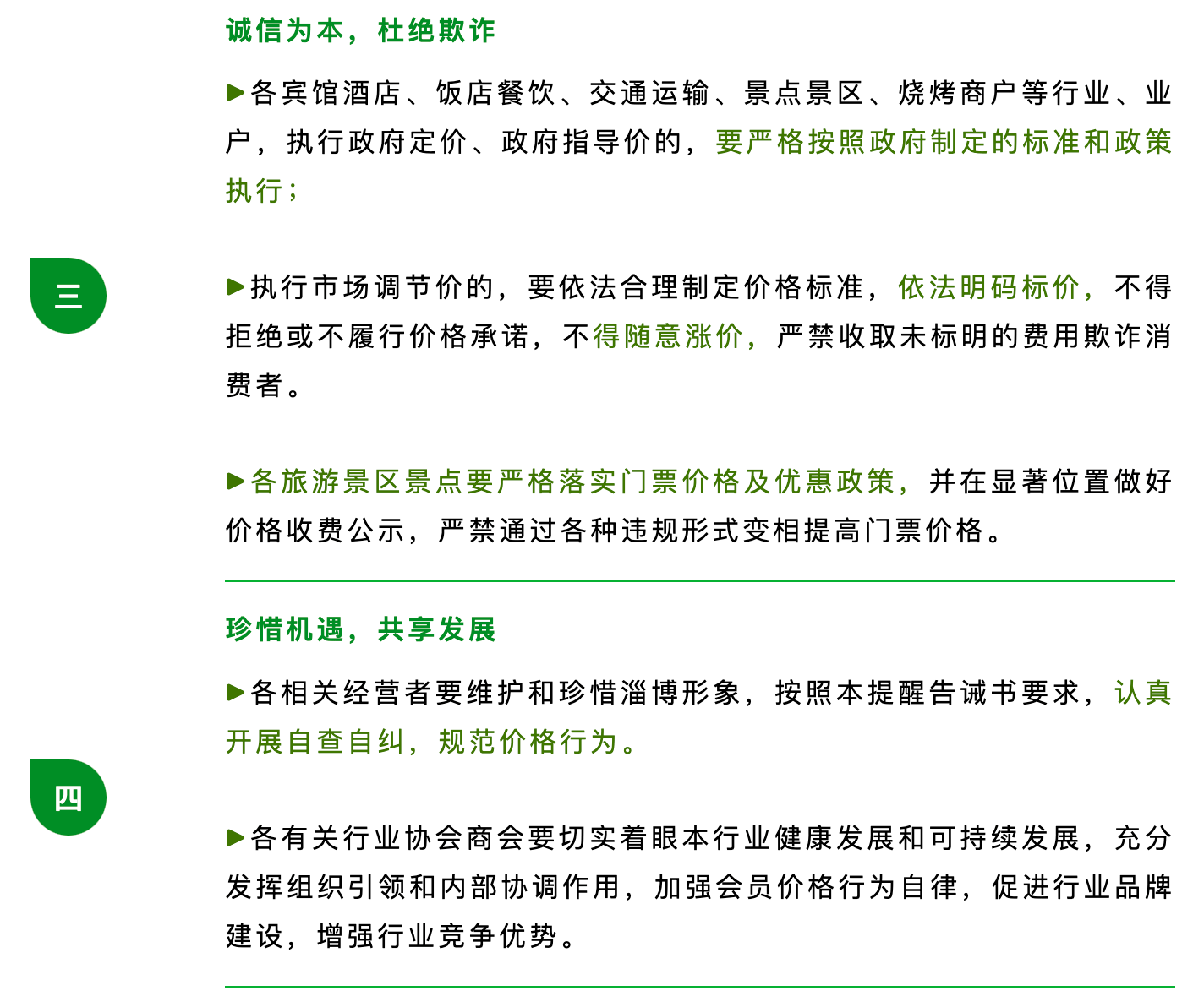 各相关经营者要维护和珍惜淄博形象,按照本提醒告诫书要求,认真开展自查自纠,规范价格行为。