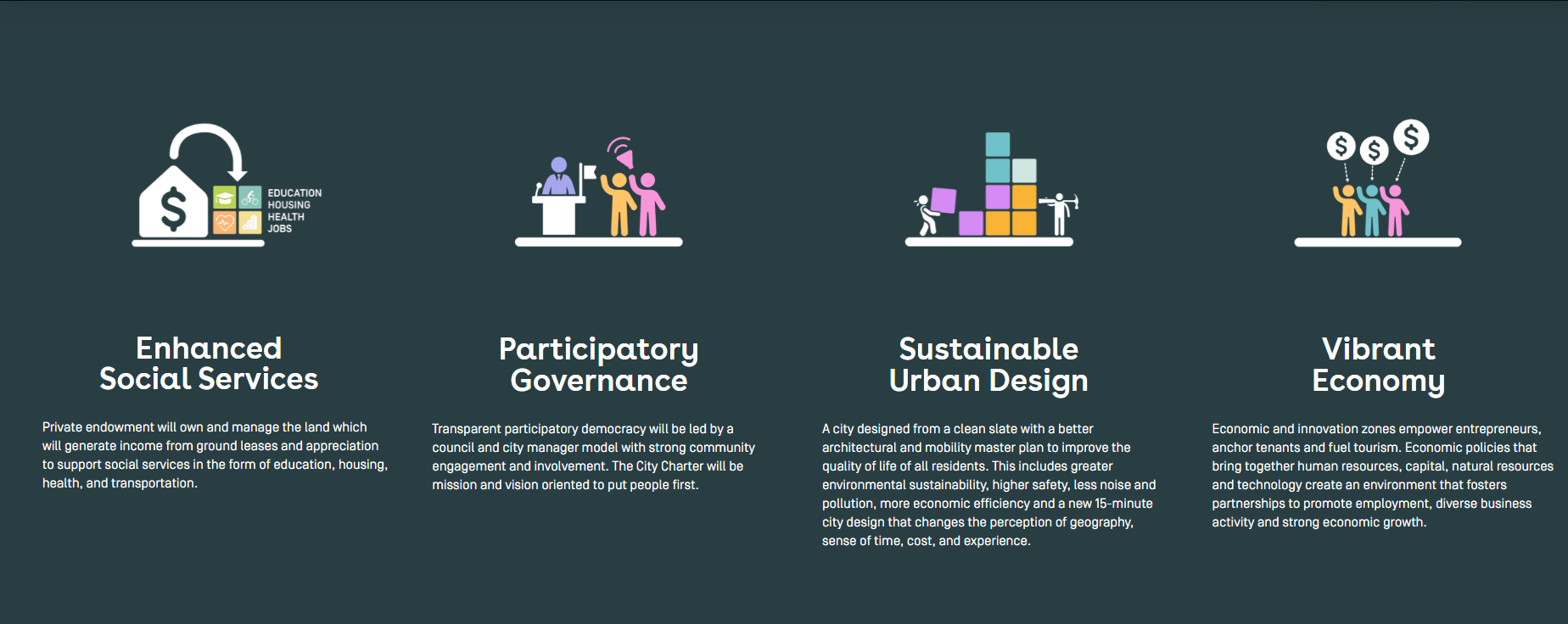 马克曾表示,起Telosa这个名字,是在向世人宣布该项目的使命:他和他的团队将建设一个全世界最开放、最公平、最具包容性的理想城市。