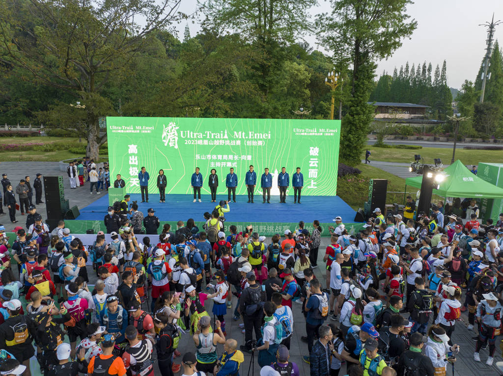 开赛仪式上,乐山市委常委、宣传部部长郭捷宣布2023年峨眉山越野挑战赛(创始赛)开赛,乐山市政府副市长张德平出席开赛仪式,峨眉山市委书记、峨眉山景区党工委书记李良出席开赛仪式并致辞,乐山市体育局党组书记彭警、局长向蕾,峨眉山景区党工委副书记钟杰,峨眉山市委常委、宣传部部长徐艳,峨眉山市政府副市长、公安局长郭丁源,峨眉山景区党工委委员、管委会副主任阙孝中出席开赛仪式。