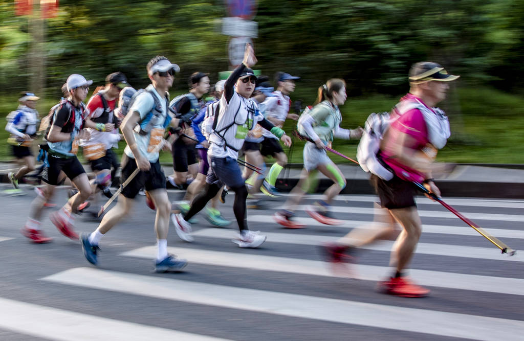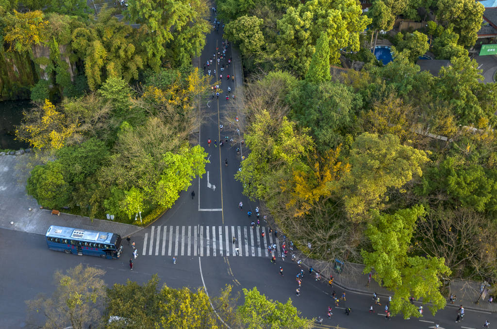上午7点整,随着裁判员的一声枪响,运动员们犹如离弦之剑奔驰在赛道上。