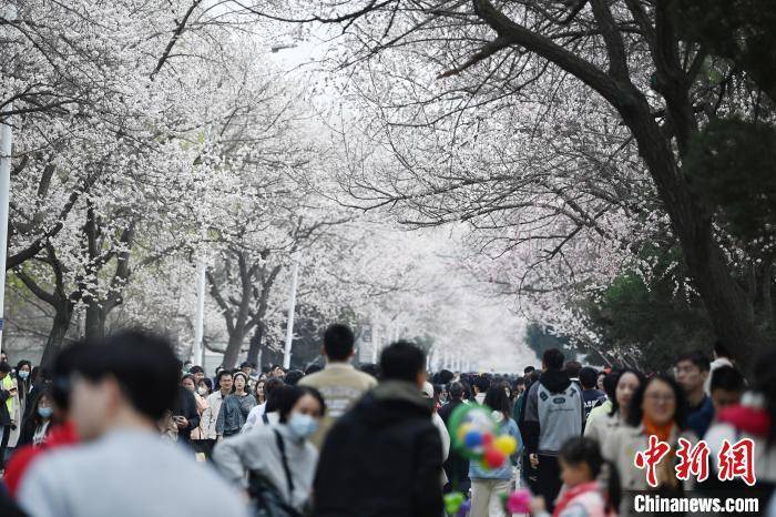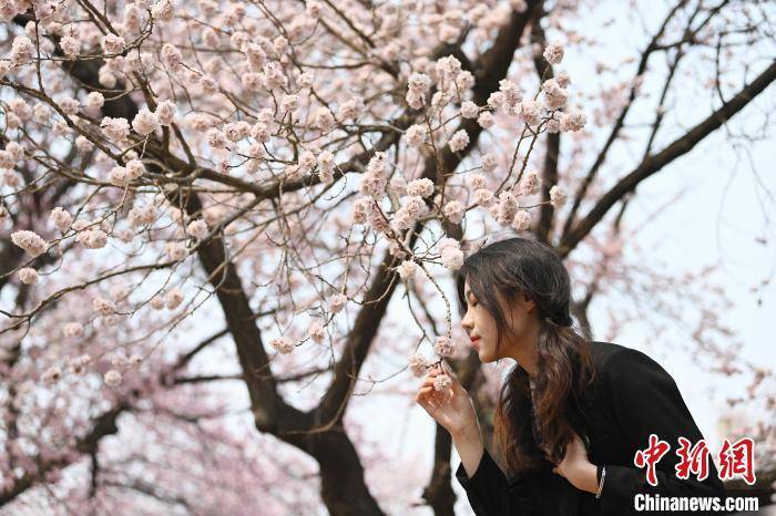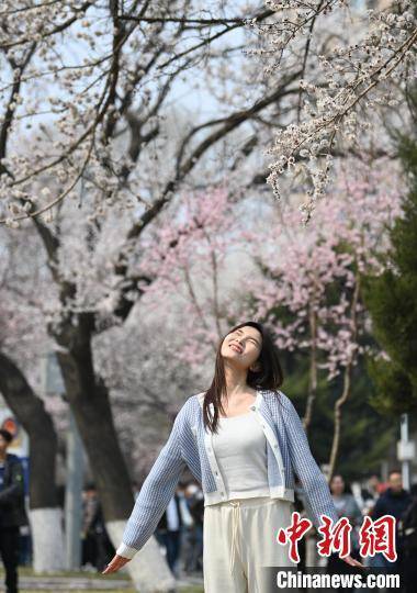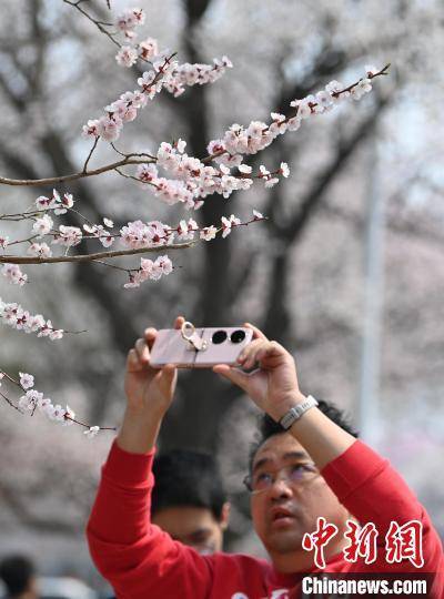 竞相绽放的杏花,吸引众多市民前来赏花。 张瑶 摄