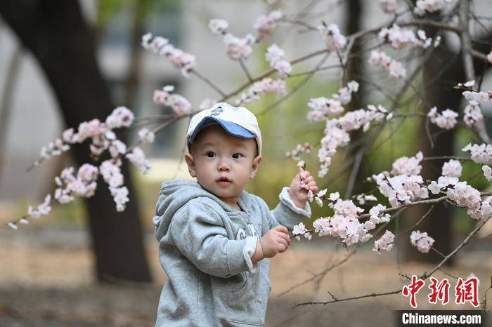 一位小朋友在杏花树下玩耍。 张瑶 摄