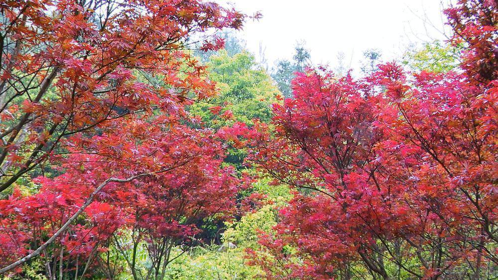 据了解,景区内种植有中国红枫、美国红枫、日本红枫等多个树种,此时的红枫多为中国枫,该品种枫叶一年红两次,第一次是春芽新叶,春去夏来,这些枫树的叶片会渐渐变成绿色,到了秋天即将落叶前叶片又会显现红色,人们既可以选择春天踏青赏“红”,也可以在秋季前来一睹漫山秋色。