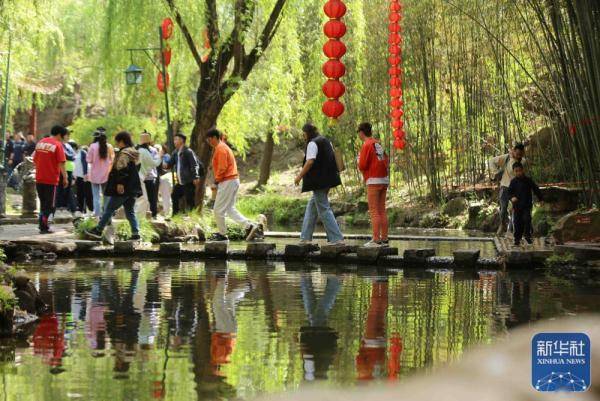 4月16日,游客在沂南县铜井镇竹泉村游玩。