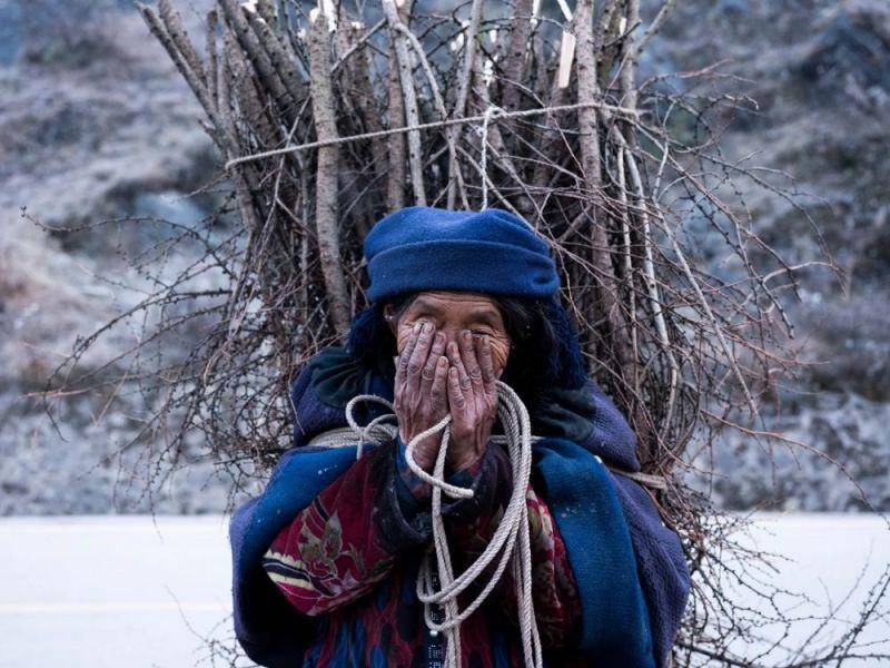 2017年12月22日,凉山州金阳县丙底洛村离村子不太远,遇到了三个背着柴火的妇女。按照艺术创作的说法,不用任何装扮和安排,这就是典型环境中的典型形象。拍摄80岁的阿古米老人,她说“不要拍,不好看”。当我把拍的照片回放给她看时,老人有点不好意思的笑了。旁边一个年轻一些的妇女告诉我说:“这大概是她这辈子第一次照相”。