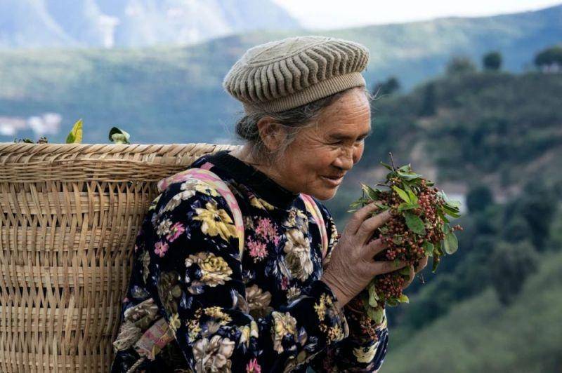 2021年10月25日,凉山州金阳县红联中心村手捧花椒,露出欣喜之情的是凉山彝族自治州金阳县红联中心村的青花椒种植户张世春。她今年61岁了,家里种植了近20亩花椒,已有超过6成的开始挂果。前几年大家帮农户们解决了花椒树旱季缺水的问题,现在收成有了基本保障。她的欣喜不仅仅是因为闻到了花椒的清香。