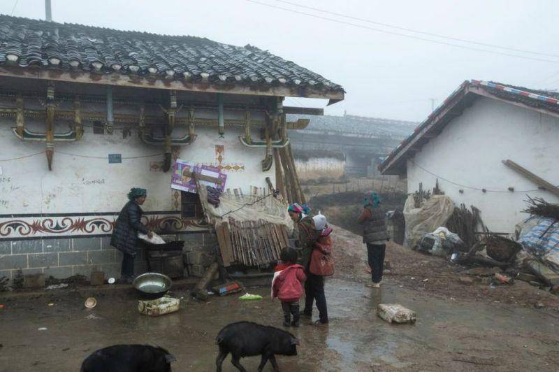 2016年10月29日,凉山州金阳县依达乡附近这是典型的彝族民居。从房屋的样式到墙外装饰的图案,都有传统的民族特点。这些年,男人们外出打工的多了,妇女们则在家带孩子、照顾老人和操持家务。彝族有一个很好的风俗,就是哪家有了什么难处,遇到了什么事情,亲戚邻居都会来帮忙和照应。