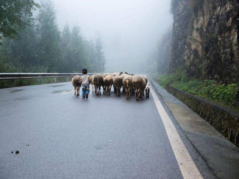 2018年10月16日,凉山州金阳县城边的公路上一早出门就遇上了这个小男孩,也就5、6岁的模样。他正赶着一群羊往山上去。他走得那么稳当,那么自信。望着他的背影,想着他今后上学读书的情景。