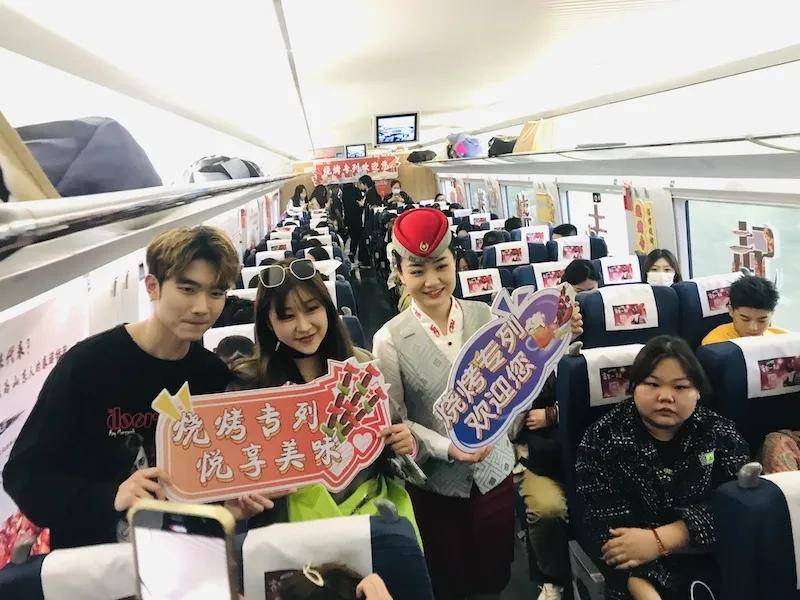 记者发现在烧烤专列上有来自全国各地的食客,有大学生、有一家人、也有全国各地的网红。