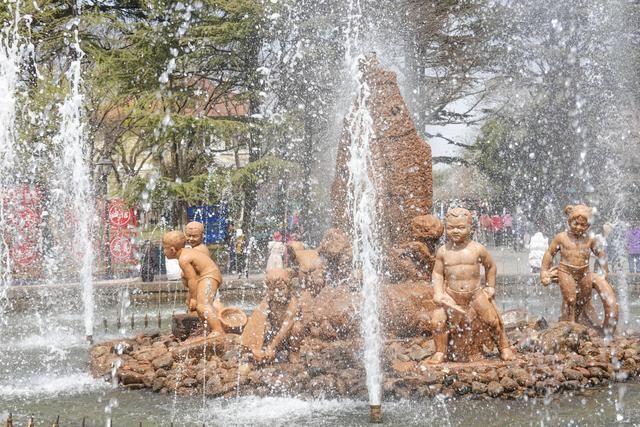 在樱花树下,游客们都在拍照、自拍,记录下这美好的时刻。一对情侣手牵手走过,留下美好的回忆。一家三口在樱花雕塑旁边合影,一幅幅生动的画面在公园里展现着。