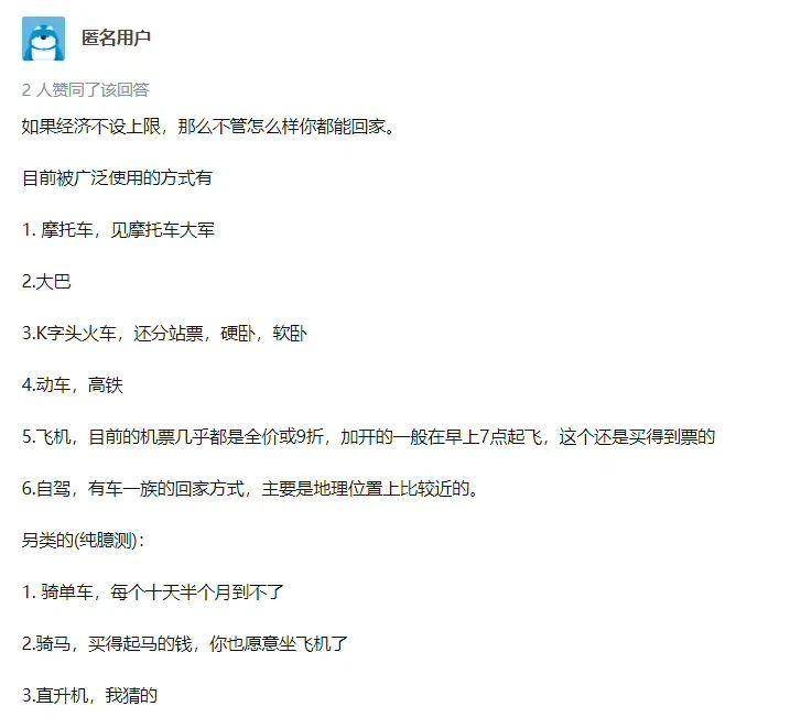 夸张的是他们真的考虑到各种方法,高铁没票还可以考虑飞机,要不然,弄辆车几个人一起拼车上路,再不然还能先从 A点到C点,再从C到原来的目的地B点,曲线救国。