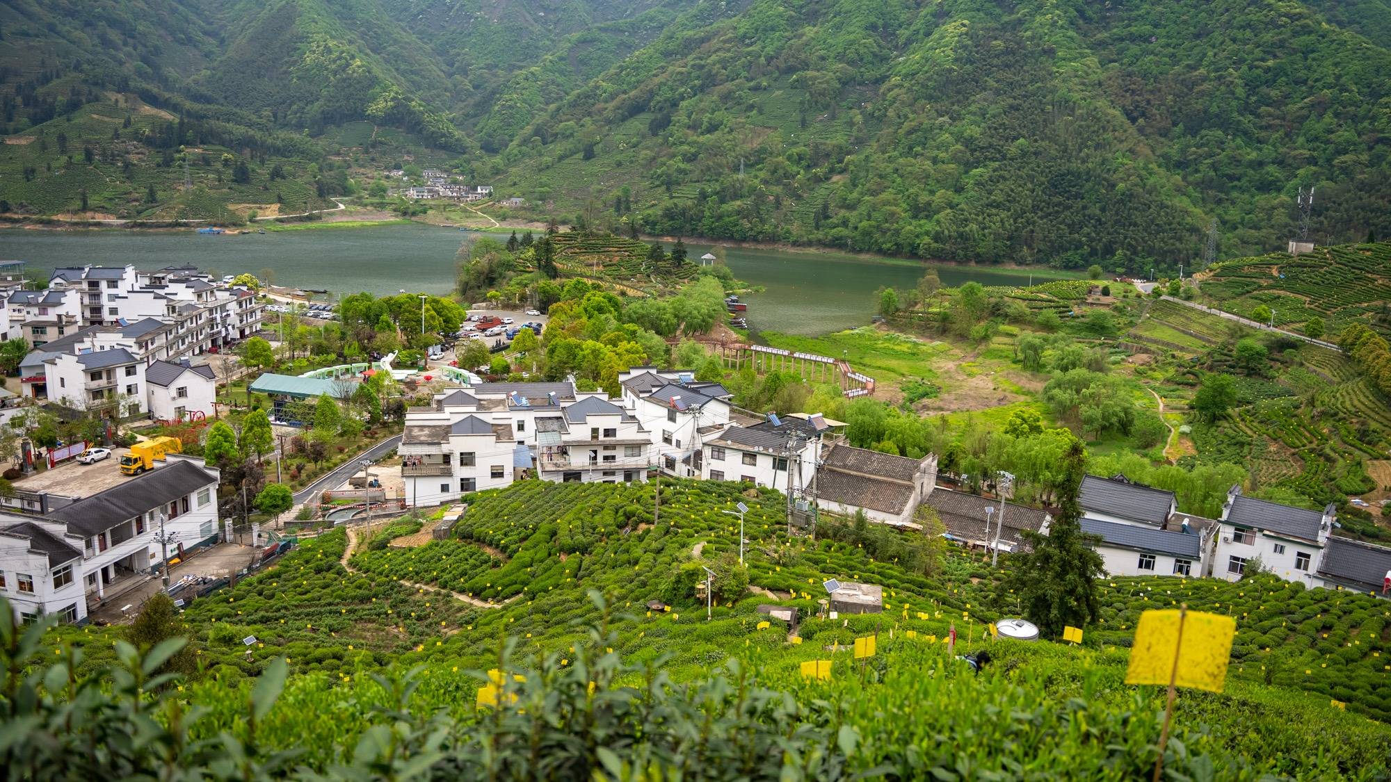 当然,除了名茶太平猴魁,猴坑村的景致也是极其绝美的。由于地处“中国最美的地方”之一的太平湖湖畔,这里入目皆是美丽恬静的如画美景,是令人流连的山野风光。隐隐如黛的青山,烟波浩渺的湖面,一望无垠的茶园,还有松竹掩映的白墙黛瓦,以及似有若无的袅袅炊烟……每一幕都是水墨烟岚的山水画,让你仅一眼便可忘却都市的纷扰,尽享无尽的自在与轻松。